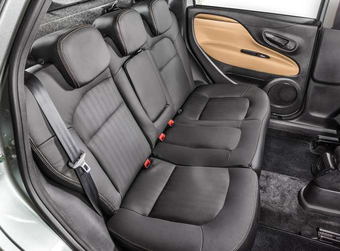 Os bancos tem revestimento parcial de couro o costura bege na versão top de linha.